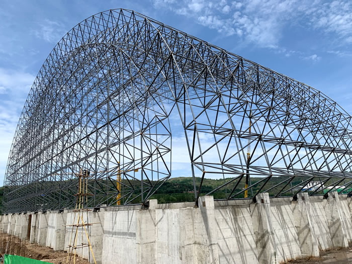 (2)网架加工前应对现场尺寸进行复测,确认无误后方可进行加工、安装;网架制作、运输、安装应遵守《空间网格结构技术规程》JGJ7-2010、《钢网架江门螺栓球节点》JG/T 10-2009、《钢网架江门螺栓球节点用高强度螺栓》 GB/T 16939-2016、《江门钢结构江门工程江门施工规范》 GB50755-2012、《江门钢结构江门工程施工质量验收标准》 GB50205-2020。